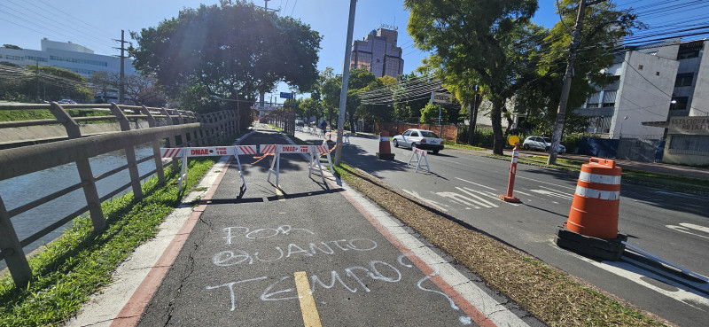 Mais de um mês depois, a ciclovia na avenida Ipiranga em Porto Alegre, junto ao Arroio Dilúvio, continua interditada após parte do talude ceder em razão do expressivo volume de chuva na época. Apesar de ser possível notar uma evolução, a obra ainda não está finalizada e impede o uso da ciclovia como meio de locomoção por pedestres e ciclistas. Em protesto, foi pichada a frase "por quanto tempo?", cobrando uma posição da EPTC, juntamente com a prefeitura de Porto Alegre, responsáveis pela obra, e a liberação da faixa.