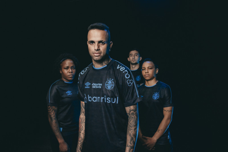 A Umbro lançou nesta quarta-feira (23) o novo terceiro uniforme do Grêmio, em homenagem aos 120 anos do clube, a serem completados no próximo mês. Toda preta, a camiseta tem detalhes em marca d’água, com formas intercaladas com o nome “Grêmio” entre si. O uniforme carrega detalhes em ciano, tanto no ombro e na gola, como também nos patrocínios, nome, número e, inclusive, como um detalhe no símbolo do clube, formado apenas por traços em azul com um fundo preto. O calção também em ciano com detalhes pretos nas laterais reforça o contraste e o design moderno da camisa, que remonta às maiores “noites copeiras” que o Grêmio já enfrentou. A nova camisa oficial 3 do Grêmio começa a ser vendida pelo e-commerce da Umbro Brasil e pelas lojas oficiais online do Tricolor a partir desta quarta-feira e nas lojas físicas a partir desta quinta-feira (24).