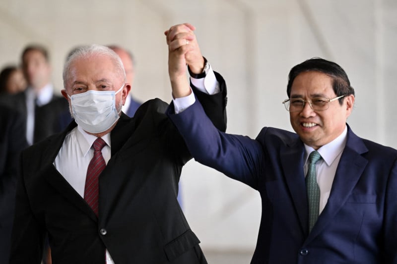 O presidente Luiz Inácio Lula da Silva recebeu, nesta segunda-feira (25) - em visita oficial - o primeiro-ministro do Vietnã, Pham Mihn Chinh, no Palácio do Itamaraty, em Brasília. Durante o encontro, representantes dos dois governos assinaram quatro instrumentos bilaterais. Em declaração à imprensa após a reunião, Lula disse que aceitou convite para ir a Hanói, capital vietnamita, em 2024, celebrar os 35 anos do estabelecimento das relações diplomáticas entre o Brasil e o Vietnã. Na área de agricultura, foi firmado um plano de ação para ampliar a cooperação entre os dois países. "Ele vai permitir avançar na abertura do mercado vietnamita para novos produtos agropecuários brasileiros", disse Lula. Também foi firmado um memorando de entendimento na área de defesa, que visa abrir caminho para exportações de produtos como aeronaves.
