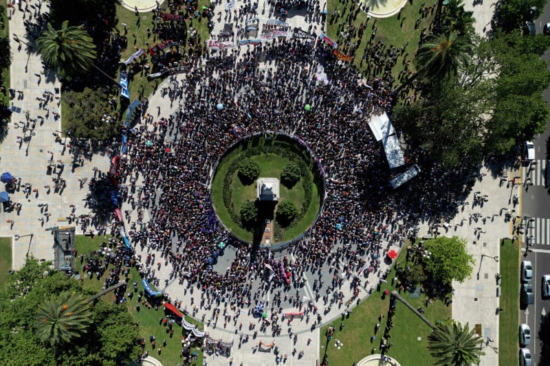A vitória do direitista Javier Milei (La Libertad Avanza) no segundo turno de eleições argentinas, no último domingo (19), gerou movimentação entre movimentos de esquerda, que realizaram uma manifestação de oposição nesta quinta-feira (23). O protesto foi organizado por sindicatos em conjunto com membros da associação Madres de Plaza de Mayo, que realizam protestos semanais para homenagear seus filhos e netos vítimas da ditadura civil-militar argentina, entre 1976 e 1983. Além do discurso ultraliberal e reformas criticadas pelos movimentos participantes do protesto, Milei já minimizou em seus discursos os feitos do governo durante a ditadura, assim como seus efeitos na população.