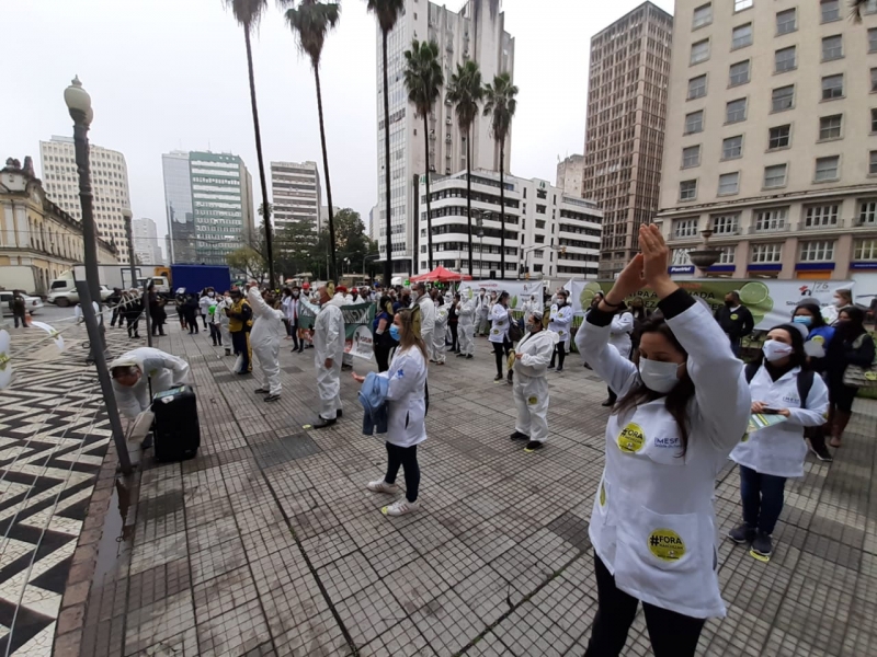 Profissionais do Imesf fazem ato de um ano das demissões em Porto Alegre