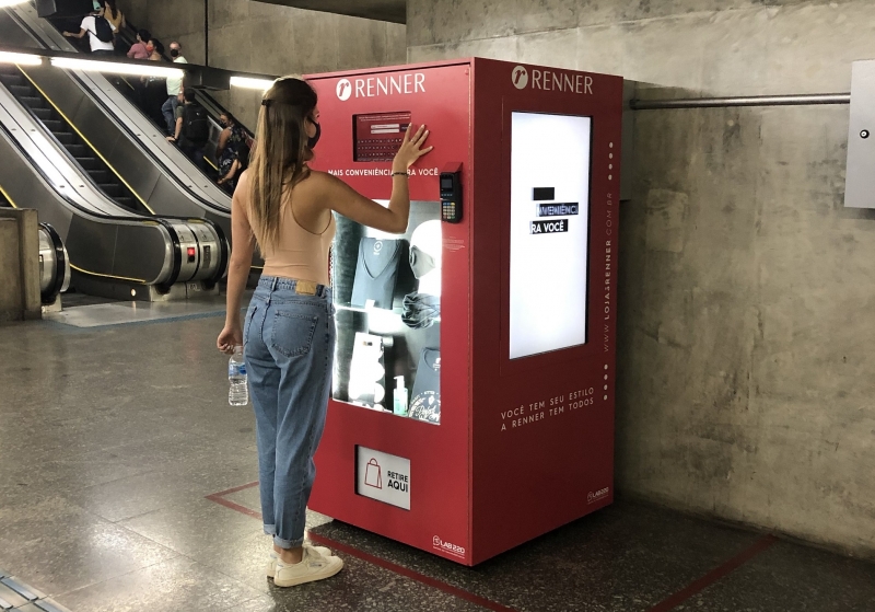 A Renner, maior varejista de moda do Brasil e com operações também no Uruguai e na Argentina, resolveu aderir a um meio físico que se espalhou em economias como a dos Estados Unidos e agora pode ser vista em locais como estações de metrô com produtos da bandeira. A primeira vending machine, como são chamadas as máquinas de venda de produtos, da rede estreou em São Paulo, próximo ao embarque da estação São Bento. Na máquina, é possível comprar camisetas básicas femininas e masculinas, máscaras de tecido, frascos de álcool em gel e acessórios como lenços para pescoço. O consumidor seleciona o item que quer levar e paga com cartão de crédito ou débito. Em nota, a varejista diz que a decisão e projeto saíram em um mês e meio. A meta é colocar a máquina em mais pontos de metrô e em áreas de conveniência em aeroportos, universidades, academias e shopping centers onde a marca ainda não está presente.