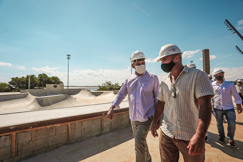 O trecho 3 da Orla do Guaíba, em obras desde outubro de 2019, após o consórcio ACA/RGS ter vencido a licitação de revitalização do espaço, recebeu na tarde desta quinta-feira (7) a visita do prefeito Sebastião Melo e do vice-prefeito Ricardo Gomes. Com 63% das obras já concluídas, a previsão de entrega da Orla revitalizada é até o final de agosto deste ano. São 1,6 km de extensão entre o Arroio Dilúvio e o Parque Gigante. A revitalização vai proporcionar aos gaúchos novos espaços de lazer. Serão 27 quadras esportivas, estruturas para à prática de esportes, ciclovia, arborização e três bares. A maior pista de skate da América Latina, com 6.268 metros quadrados, também faz parte dos novos atrativos da Orla do Guaíba. Foram investidos mais de R$ 50,6 milhões no projeto. Os recursos são da Cooperação Andina de Fomento (CAF) e do Fundo da Iluminação Pública.