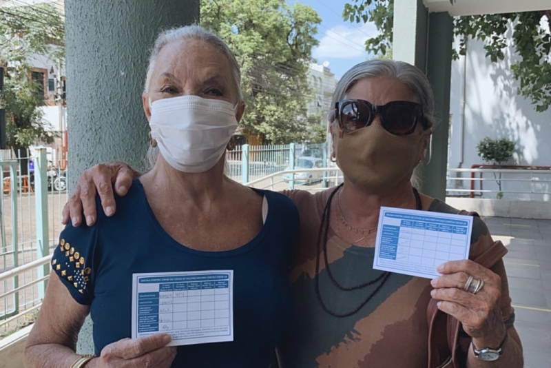 Amigas na alegria e mais ainda na pandemia. A vacinação uniu mais duas porto-alegrenses, que se conhecem há 66 anos, desde o tempo de Colégio Bom Conselho. Ana Maria Loureiro (esquerda, na foto) e Vânia Rolla, com 76 anos, comemoraram a hora de receber as doses da Coronavac. A dupla foi ao posto Santa Cecília e registrou o momento mostrando as carteirinhas da imunização. Depois de um ano de isolamento, Ana e Vânia falaram sobre o papel da ciência para dar respostas à pandemia e defenderam: "Todos os brasileiros têm o direito de receber a vacina o mais rápido possível". A rapidez depende da oferta de doses. Em 28 dias, Ana Maria e Vânia voltam a se ver na aplicação da segunda dose. Até lá, as amigas combinaram a rotina: continuar a usar máscara e álcool em gel, lavar bem as mãos e manter o distanciamento, que não abalou em nada uma amizade que se renova há mais de seis décadas.