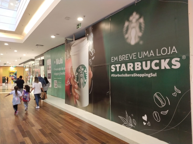 Tapumes identificam unidade da rede Starbucks no BarraShoppingSul