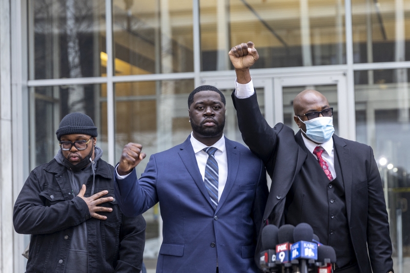 Derek Chauvin, o ex-policial branco condenado pelo assassinato de George Floyd, caso que foi o estopim para uma série de protestos nos Estados Unidos em 2020, confessou ser culpado de acusações federais de violação dos direitos civis de Floyd em depoimento no Tribunal Distrital dos Estados Unidos em Minnesota, nesta quarta-feira (15). Chauvin, de 45 anos, que já cumpre uma sentença de prisão estadual de 22 anos e meio por matar Floyd em maio de 2020, pode ser condenado a mais anos de reclusão quando for sentenciado em uma data posterior. Na foto, estão os irmãos de Floyd, Philonise (D) e Terrence Floyd (E) e o sobrinho Brandon Williams (C) que, junto com o irmão Rodney Floyd, estiveram no tribunal quando Chauvin se declarou culpado e, após a audiência, participaram de uma entrevista coletiva. "Nunca conseguiremos justiça porque nunca conseguiremos George de volta", disse Philonise Floyd a jornalistas presentes no local.
