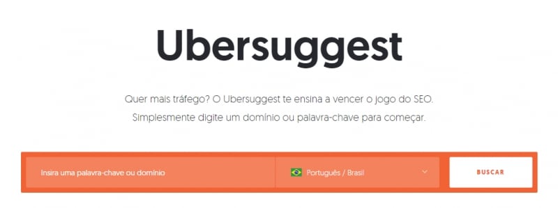 O Ubersuggest apresenta dicas de palavras-chave e uma análise detalhada de domínios. Para começar a utilizar, basta acessar a página principal e digitar as palavras-chave ou domínios que deseja analisar. São apresentados dados como ideias de novas palavras-chave.