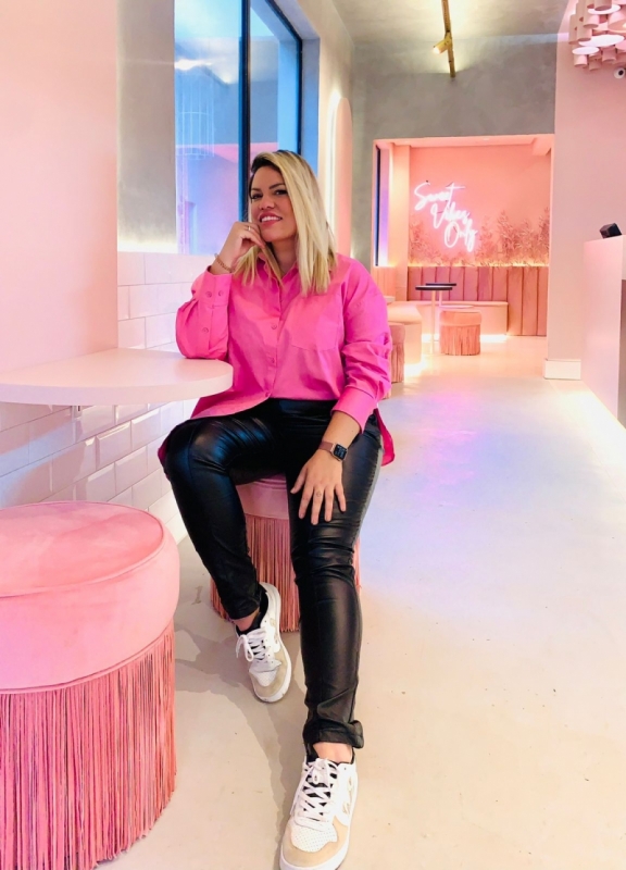 A decoração toda cor de rosa, em alusão à identidade visual, tem sido uma experiência a parte para quem visita o local, conta Claudia. O objetivo do ambiente monocromático e com referências de negócios de outros países, segundo ela, é proporcionar uma experiência maior para a clientela.