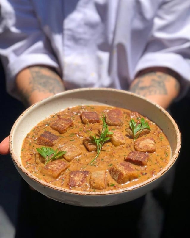 Mesmo se tratando de uma culinária que utiliza, em muitos de seus pratos típicos, insumos de origem animal, uma das grandes preocupações dos sócios é ser um espaço inclusivo, oferecendo opções vegetarianas e veganas. “A moqueca de camarão e o acarajé são os carros-chefes da casa, mas também temos moqueca de banana da terra e acarajé com cogumelo paris. É sucesso absoluto para o público que não come carne”, garante o sócio, reforçando que quase todos os pratos do cardápio possuem uma versão sem carne.