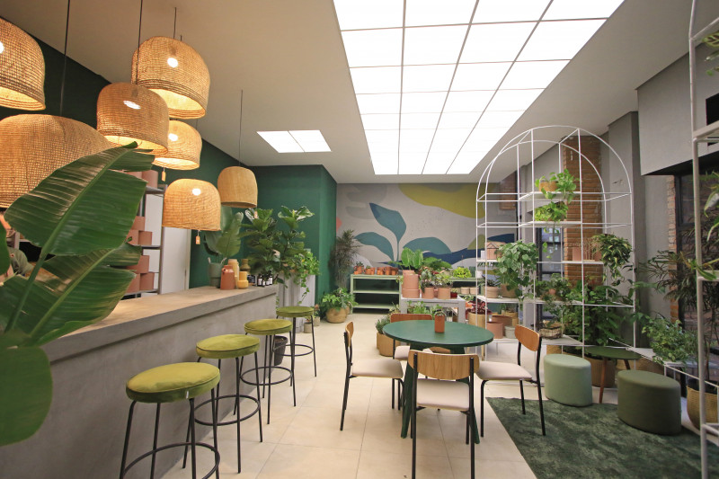Ainda em softopening, a nova unidade começa a operar, oficialmente, na próxima quinta-feira (20). Tiago, que toca o negócio ao lado de Roberta Labarthe, conta que a ideia de ocupar uma das lojas da Nova Olaria veio a partir de um convite da Cyrela Goldsztein, responsável pelas obras de revitalização do espaço. "Estávamos com a intenção de expandir, e aí participamos da CasaCor neste ano, com uma operação durante dois meses, com a intenção de justamente já criar uma versão um pouco mais pocket. Fomos convidados pela Cyrela para essa operação que ficará aqui por oito meses. Nossa ideia principal é criar, a partir dessas duas lojas, uma mais plantas e outra mais cafeteria, um plano de franquia", conta Tiago.