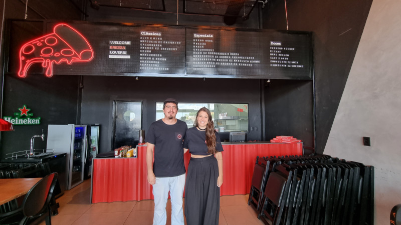 Foi do desejo de encontrar um espaço que oferecesse a pizza dos seus sonhos que Helen Raphaelli, 26 anos, abriu a Brezza Pizza em Viamão. O negócio, criado em dezembro de 2022, nasceu de olho no futuro, mirando no franchising. A Brezza Pizza mantém a padronização desde a fachada até a cozinha, que é comandada pelo namorado e sócio, César Rocha, 30 anos, sem deixar a criatividade de lado.