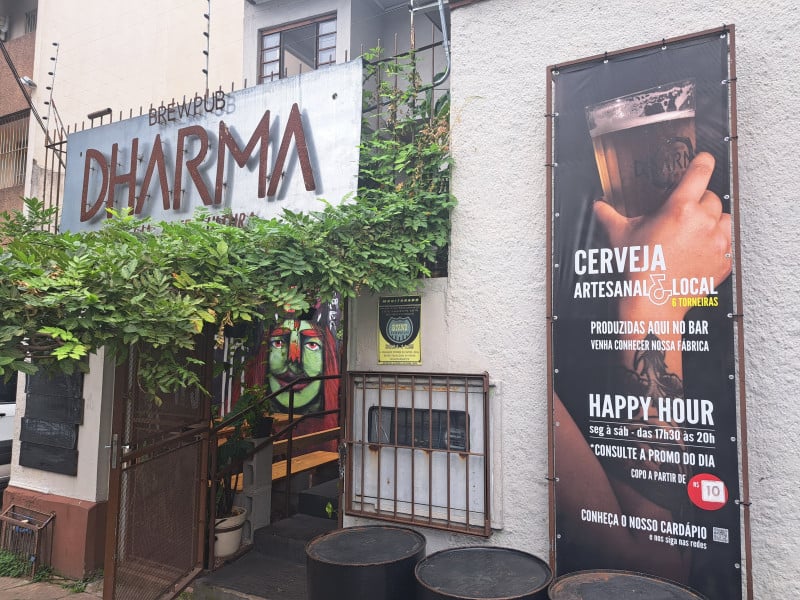 Com pinacoteca no andar superior, eventos de desenho, música ao vivo, colagem, arte urbana nos ambientes e nos rótulos, plantas e uma obra feita com grafite na fachada, o Dharma Brewpub busca dar espaço à arte por meio da gastronomia. “Dá um estilo mais nosso”, comenta Tomaz Stumpf, proprietário do estabelecimento, fazendo referência às individualidades que cada ambiente ganha ao receber as intervenções artísticas. O empreendedor também conta com a parceria dos sócios, Tiago Stumpf e Guilherme Gutiérrez, para operar na rua Dr. Sebastião Leão, nº 188, na Cidade Baixa.