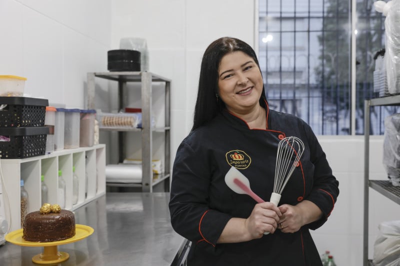 Uma história de sobrevivência. É assim que Priscilla Moraes Goulart Turski define a sua trajetória empreendedora. Desde 2020, ela comanda a Imperatriz Tortas na rua Alberto, nº 166, no bairro Rubem Berta.