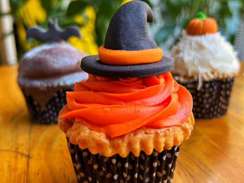 A Charlie está com cardápio de doces temáticos para o Halloween. Os cupcakes foram elaborados com confeitos coloridos e tem sabor de abóbora com coco. Já os cakepops - espécie de pirulito de bolo - são decorados com olhinhos e chapéu de bruxa.