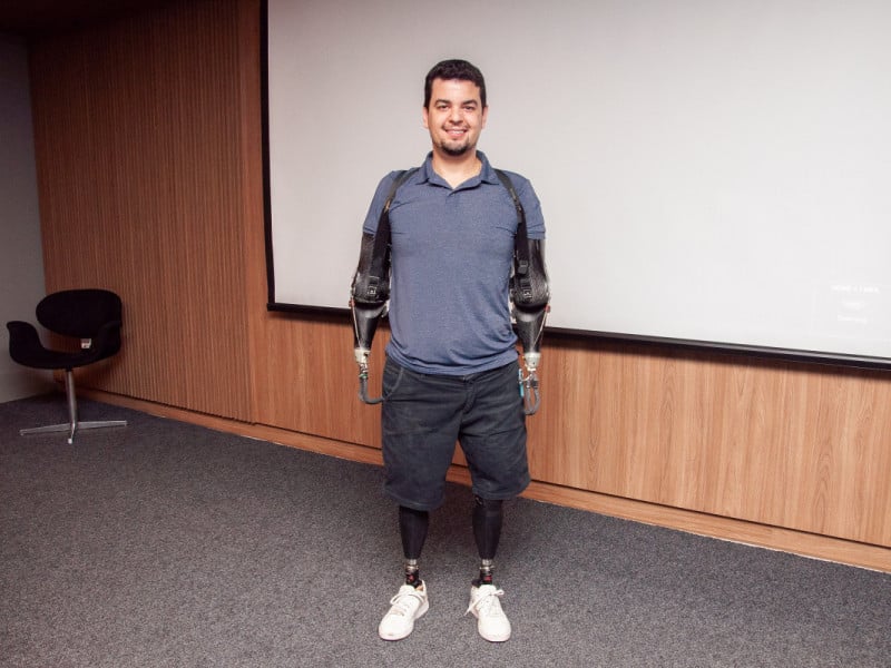 Pimenta - A gente está acostumado com plug and play, então, não adianta você querer colocar a prótese e achar que vai sair andando. É igual você subir numa perna de pau. Você vai ter que treinar equilíbrio, treinar seu corpo, abdômen, estrutura. E quanto mais amputações você adiciona, pior vai ficando. Quem perde as duas pernas não tem o dobro da dificuldade da pessoa que perde uma. Potencializa. Você tem uma perna, e ali é seu porto seguro. Se não tem nenhuma das duas, não é duas vezes mais difícil, é muito mais difícil. Perdeu acima das articulações, mais difícil ainda. E você substituir uma perna até vai, mas uma mão? A mão humana é tão precisa. Se trata muito mais de uma adaptação da pessoa à tecnologia, do que da tecnologia já chegar funcionando como ela poderia. Quem possibilita esse funcionamento é a pessoa. O que mais conheci são pessoas na cadeira de rodas com próteses do valor de um carro guardadas no armário.