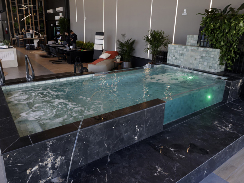 As seis piscinas instaladas no chão precisavam ser removidas para verificar como estava a estrutura embaixo delas. Inicialmente, a ideia era reformar todo o prédio, que era alugado, mas não houve apoio por parte do proprietário. Com a parceria da fabricante Igui, teve início a busca por um novo endereço para reabrir a loja.