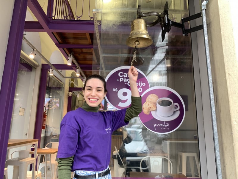 A loja possui um sino na entrada, que é tocado toda vez que sai uma nova fornada