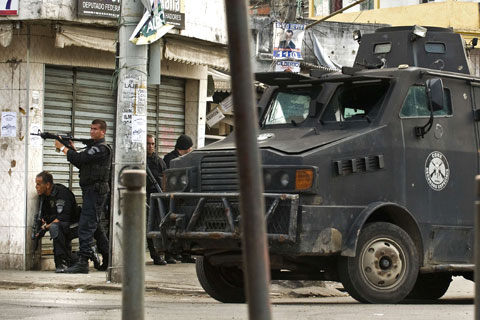 Cento e cinquenta policiais do Batalhão de Operações Especiais (Bope) e 30 fuzileiros navais com rostos pintados entraram na Vila Cruzeiro, no bairro da Penha, na zona Norte do Rio de Janeiro, no início da tarde desta quinta-feira. Seis carros blindados do tipo M113 do Corpo de Fuzileiros navais estão sendo usados para transporte de pessoal. O veículo foi usado na guerra do Iraque. Balanço apresentado no início da noite, apontou que desde domingo, já ocorreram 34 mortes e outras 72 ficaram feridas.