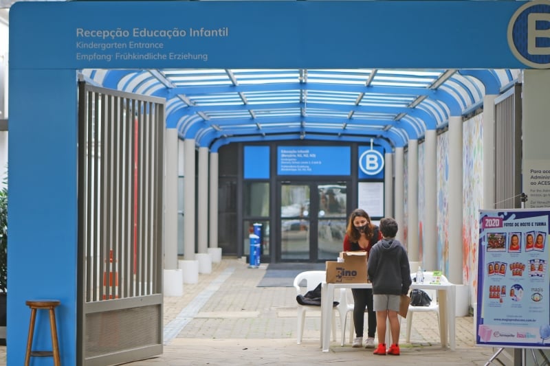 Protocolos sanitários precisam ser seguidos e há um sistema de comunicação com a Secretaria da Saúde para informar sobre casos suspeitos de Covid-19. Equipes podem ir até a unidade, caso precise de mais testagem, ou as pessoas recebem voucher para ir ao posto de coleta de RT-PCR mais perto da escola.