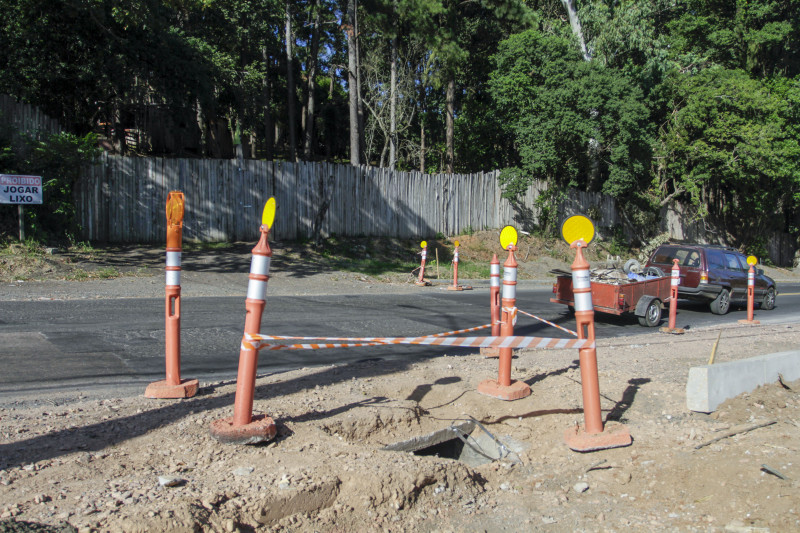 Para os pedestres, a situação continua precária. A prefeitura afirma que está instalando meio-fio nos trechos de alargamento concluídos, contudo, a execução das calçadas é de responsabilidade dos proprietários. Segundo Marcos Felipi, os moradores e donos de empreendimentos na área já foram avisados que são responsáveis pelas calçadas. No entanto, nas áreas em que não ocorrerá o alargamento, não serão instalados meio-fio, e a população seguirá tendo que caminhar por trechos irregulares e acostamento.