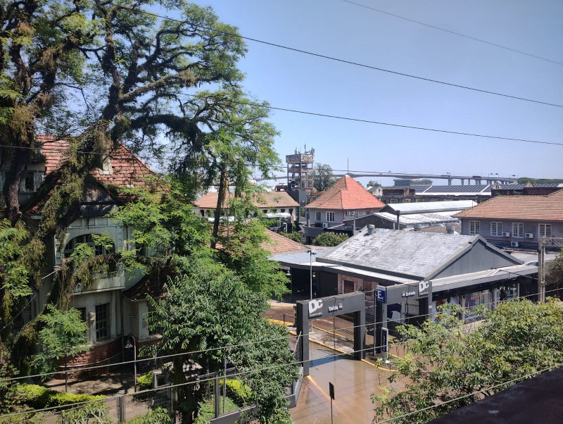As águas tomaram as ruas da região do 4º Distrito com a falha na comporta 13 fazendo a prefeitura clamar para que a população evite deslocamentos para a região. Espaços como este registrado pelo fotógrafo Luciano Lanes, da prefeitura de Porto Alegre (abaixo), se tornaram alagadiços inviáveis para o trânsito de pessoas. O Dmae trabalha no local para recuperar a estrutura avariada.