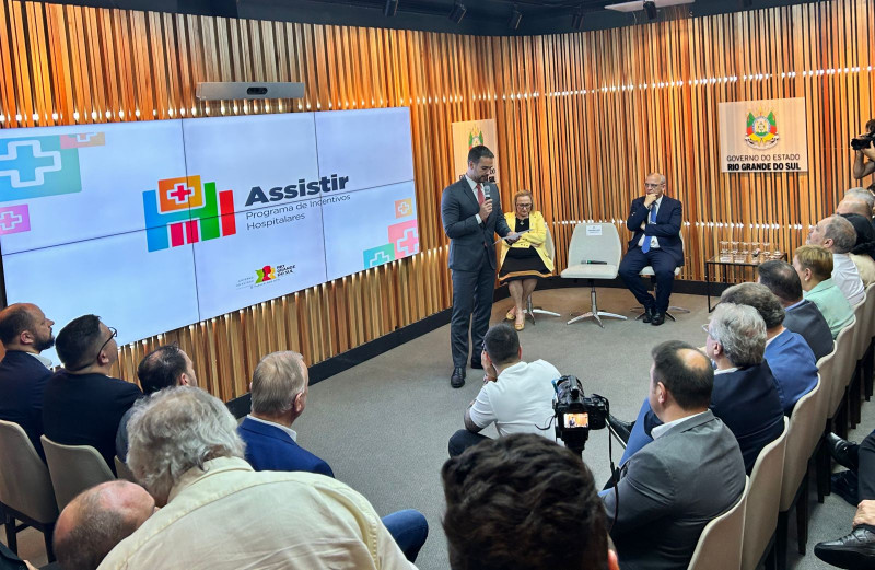 O governador Eduardo Leite, junto da secretária da saúde, Arita Bergmann, anunciaram um conjunto de mudanças no programa de incentivos hospitalares do Estado do Rio Grande do Sul, lançado em 02 de agosto de 2021, nomeado Assistir.