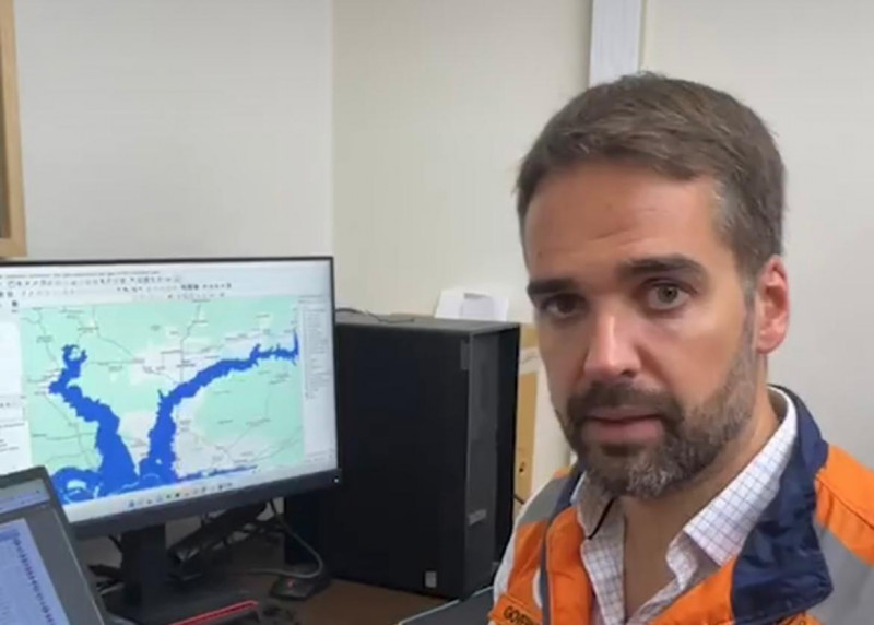 “Mas também pela Lagoa dos Patos, municípios da Costa Doce serão afetados, com a demora no escoamento. Mesmo sem chuva, a água vai subir por lá. É preciso fazer esse alerta para a região. É um cenário crítico. Busquem Defesa Civil e evacuem, se for a orientação”, disse o hidrólogo Pedro Camargo, ao lado de Leite.
