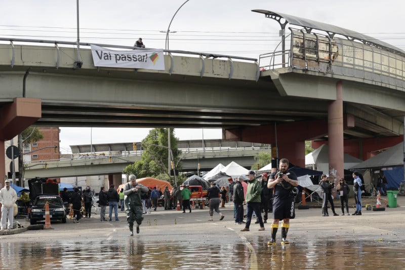 A área debaixo do viaduto é um ponto de acolhimento com suporte 24h. Ali há assistência médica, farmácia, banca logística, tenda pet, oficina e posto de gasolina para embarcações. “Todo trabalho é feito por civis, não temos auxílio do Estado. Mesmo assim não registramos nenhum acidente de trabalho e nenhum óbito”, relata Ximango.