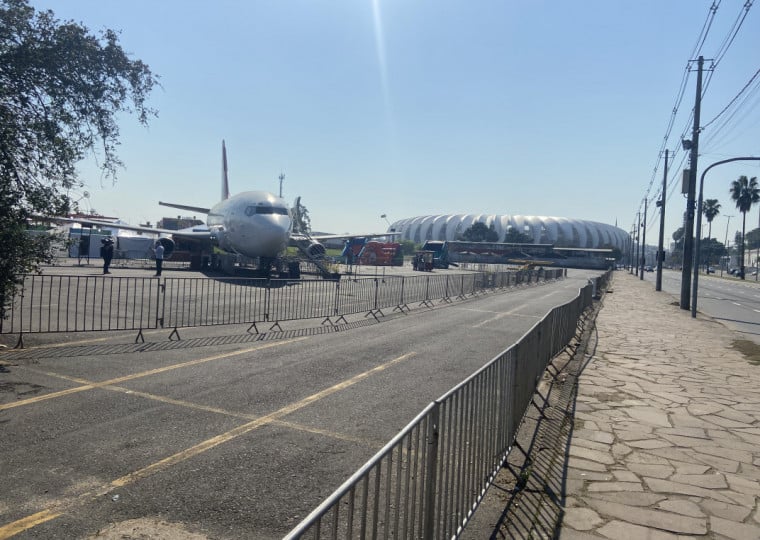 O Boeing 737 pesa em torno de 30 toneladas, com dimensões de aproximadamente 30 metros de largura e 30 metros de comprimento, e foi transportado para o local do evento no início de abril pelas ruas da cidade, atraindo olhares dos curiosos e até mesmo uma escolta da Empresa Pública de Transporte e Circulação (EPTC) para chegar até as proximidades do estádio. O avião estará aberto para visitação do público e contará com uma programação cultural.
