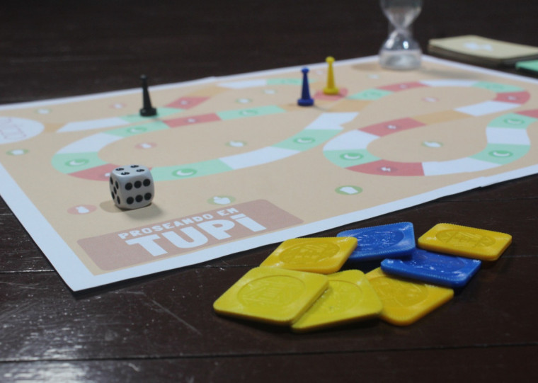 Formado por um jogo de tabuleiro, com baralhos de cartas que apresentam palavras dos povos originários do Brasil associadas a imagens representativas (de animais, plantas, alimentos, entre outros), a ferramenta foi elaborada para ser aplicada em salas de aula do 1º e 2º ano (para grupos com quatro crianças, em média). A proposta tem como objetivo viabilizar que os pequenos se conscientizem, resgatem e reconheçam a procedência de palavras indígenas, a partir do desenvolvimento de habilidades de expressão corporal e de fluência leitora. Para isso, o material utiliza como vocabulário as palavras incorporadas do Tupi à Língua Portuguesa Brasileira, de forma contextualizada com a flora e a fauna presentes no território nacional.