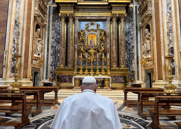 O Papa Francisco visitou neste sábado (12) - véspera do Domingo de Ramos e do início da Semana Santa - a Basílica de Santa Maria Maior, em Roma, para rezar diante da imagem sagrada da Virgem Maria, Salus Populi Romani. Essa é uma das poucas aparições do papa após se recuperar de uma pneumonia bilateral.