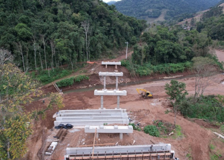 O superintendente regional do Departamento Autônomo de Estradas de Rodagem (Daer), João Batista de Almeida, destaca que os trabalhos estão avançados. "No município, existia uma ponte monovia, que foi levada pelas enchentes de 2024, entre abril e maio", destaca. Hoje, está sendo construída uma nova ponte de concreto, com duas vias. A obra, que foi iniciada em novembro de 2024, será concluída e entregue até o final de 2025.