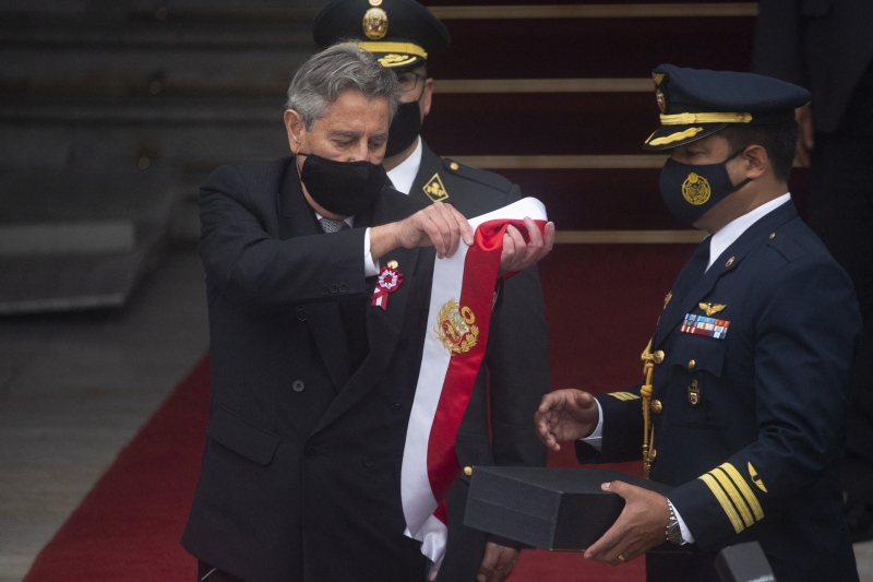 Sagasti agradeceu os aplausos e saiu do palácio legislativo sorrindo. Diferentemente de mandatários anteriores, ele deixa a presidência com uma popularidade alta para os padrões peruanos, de 51% (segundo o Instituto de Estudos Peruanos).