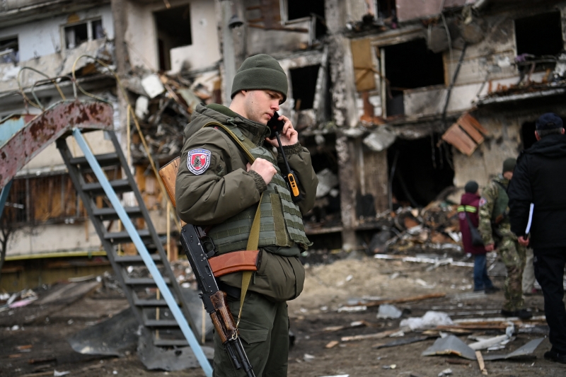 Um alto funcionário ucraniano disse que as forças ucranianas defendem a capital em quatro frentes, e estão em menor número. Autoridades ucranianas disseram que um avião russo foi derrubado e colidiu com um prédio em Kiev durante a noite, incendiando-o e ferindo oito pessoas