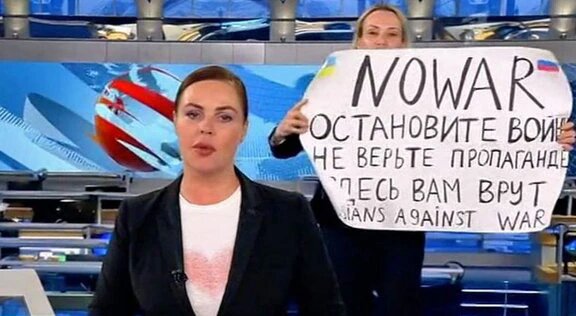 Em um desafio à mordaça estabelecida pelo Kremlin à manifestações contrárias à guerra, Ovsiannikova invadiu a transmissão do telejornal noturno da emissora na segunda-feira (14) pedindo o fim da guerra e denunciando a "propaganda" do governo russo.