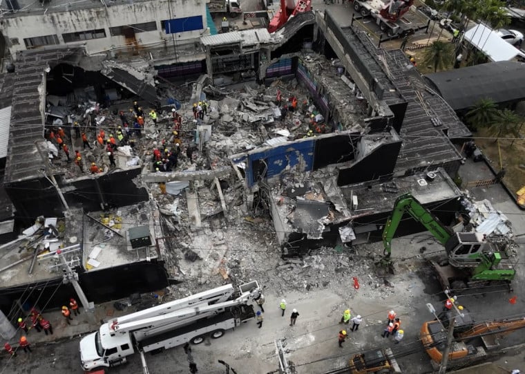 O teto da casa noturna desabou na madrugada de terça-feira (8) durante show do cantor de merengue Rubby Pérez, que também está entre os mortos. Do alto, é possível ver a estrutura da boate com um enorme buraco ao centro, deixado pelo desabamento do teto. Já poucos curiosos e familiares restavam no entorno do local nesta quinta.