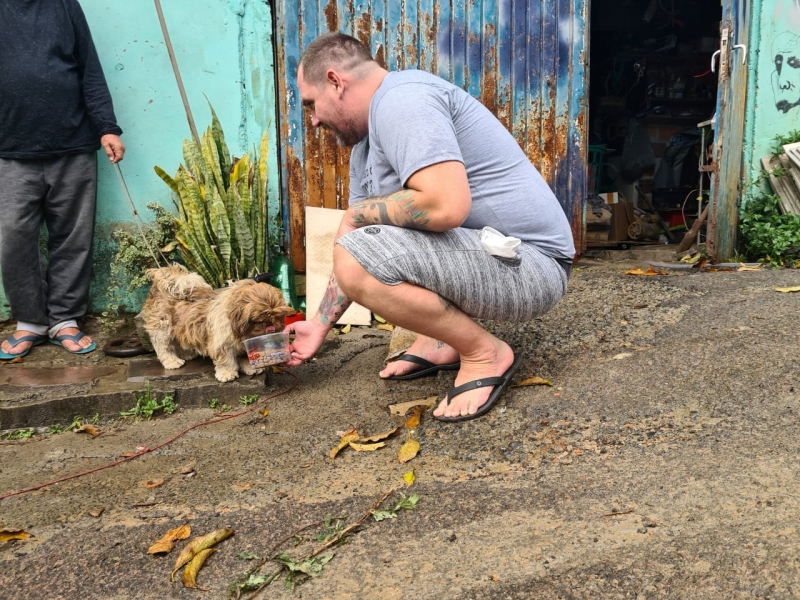 Maroni alimentou animais de rua e conversou com protetores de animais. Crédito: Arquivo Pessoal