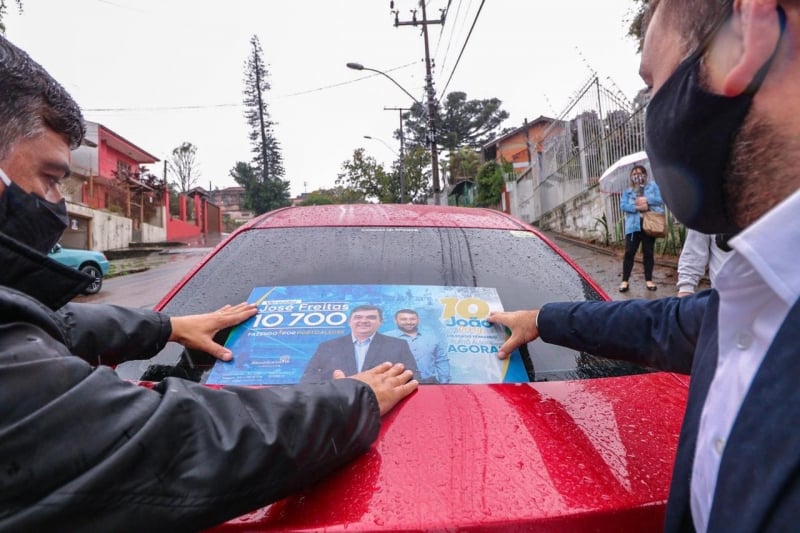 João Derly e Delegado Fernando adesivaram carros de apoiadores. Crédito: Filipe Lederhos